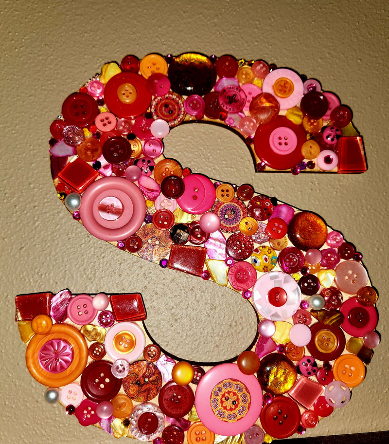 Wood letter adorned with buttons. Can be custom made, name your color. $25.00